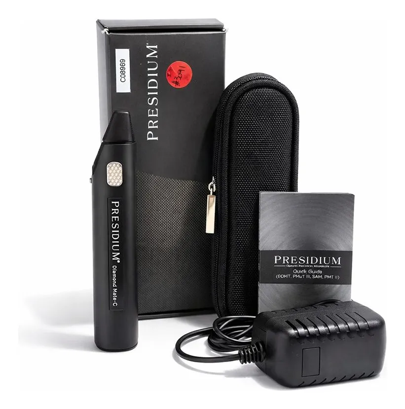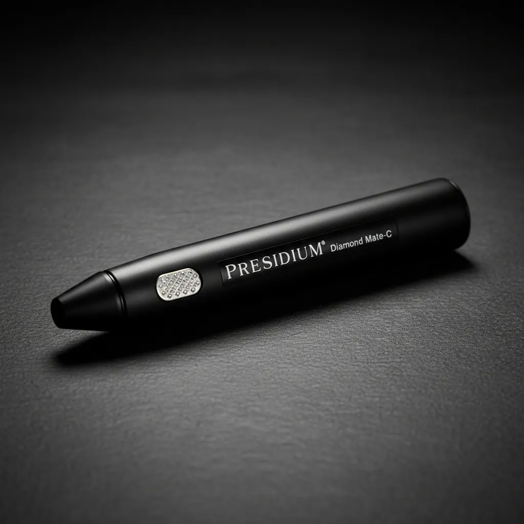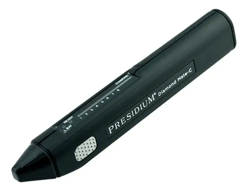 El Presidium Diamond Mate C es un detector electrónico portátil diseñado para identificar diamantes de forma rápida y confiable. Utiliza tecnología de conductividad térmica para diferenciar diamantes auténticos de imitaciones comunes como cristal, zirconia cúbica u otras piedras sintéticas. Es una herramienta práctica tanto para joyeros profesionales como para uso comercial o personal, gracias a su tamaño compacto, facilidad de uso y alta precisión.