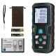 Lectura clara y visible gracias a su pantalla retroiluminada. Incluye funciones avanzadas para cálculos rápidos de área, volumen y distancias indirectas mediante el método pitagórico. Permite medición continua para seguimiento en desplazamiento. Diseño compacto que facilita su transporte en bolsillo, mochila o caja de herramientas. Compatible con múltiples unidades de medida para adaptarse a distintos trabajos. Modo de uso Encender el equipo presionando el botón principal. Seleccionar la unidad de medida deseada. Apuntar el láser hacia el punto a medir, asegurándose de que el rayo impacte en una superficie visible.