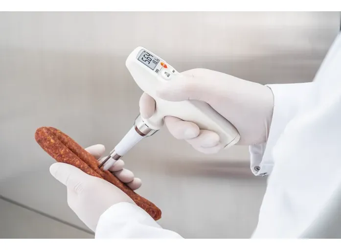 El Testo 205 es un medidor portátil diseñado para la medición simultánea de pH y temperatura en medios semisólidos, especialmente en aplicaciones del sector alimentario como carne y quesos. Incorpora una sonda combinada robusta que permite realizar mediciones rápidas y precisas con compensación automática de temperatura. Su diseño compacto y su protección IP65 lo hacen adecuado para entornos exigentes de producción y control de calidad.
