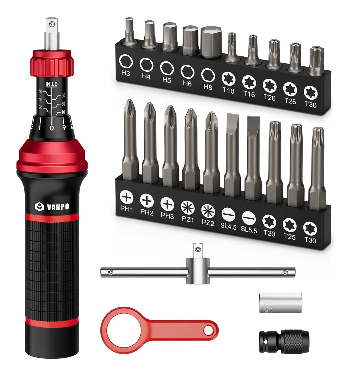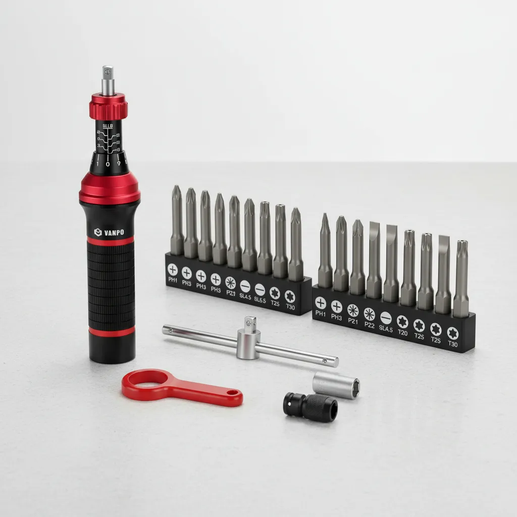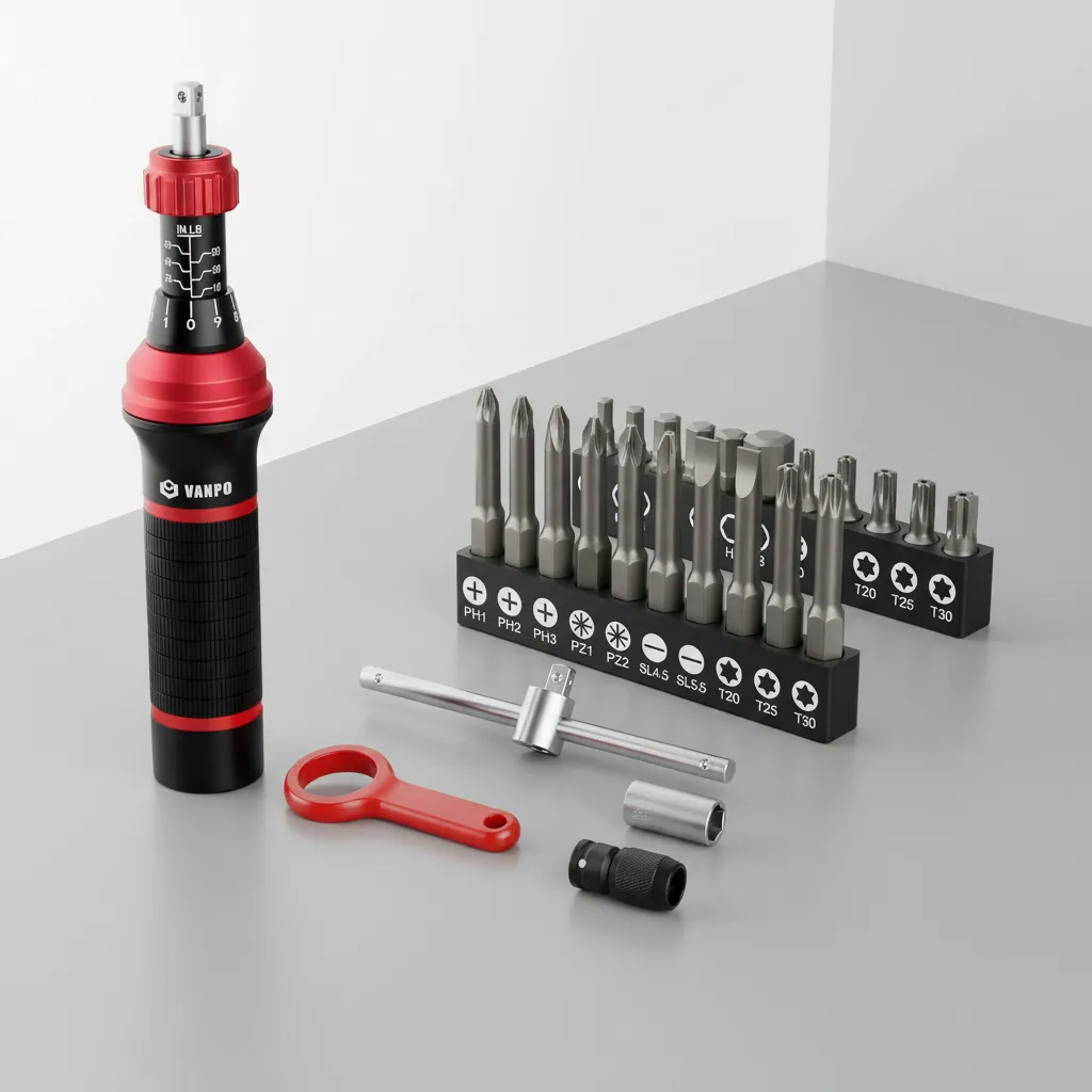 Marca: VANPO Modelo: XM-C15 Tipo de herramienta: Destornillador / llave dinamométrica Rango de torque: 13,6 a 81,3 Nm Accionamiento (encastre): 1/4 pulgada Precisión: ±3 % Mecanismo: Tipo click Material del cuerpo: Acero de alta resistencia Largo total: aprox. 280 mm Largo de la varilla: aprox. 150 mm Tipo de uso: Profesional Especificaciones Permite ajustar el torque mediante escala graduada clara y fácil de leer. Incorpora un sistema de aviso mecánico tipo “click” que indica el alcance del torque seleccionado. Construcción robusta para uso intensivo y prolongado. Diseño ergonómico que mejora el control y la comodidad durante el trabajo. Compatible con una amplia variedad de puntas y accesorios estándar de 1/4 pulgada, lo que amplía su versatilidad en diferentes aplicaciones técnicas y mecánicas.