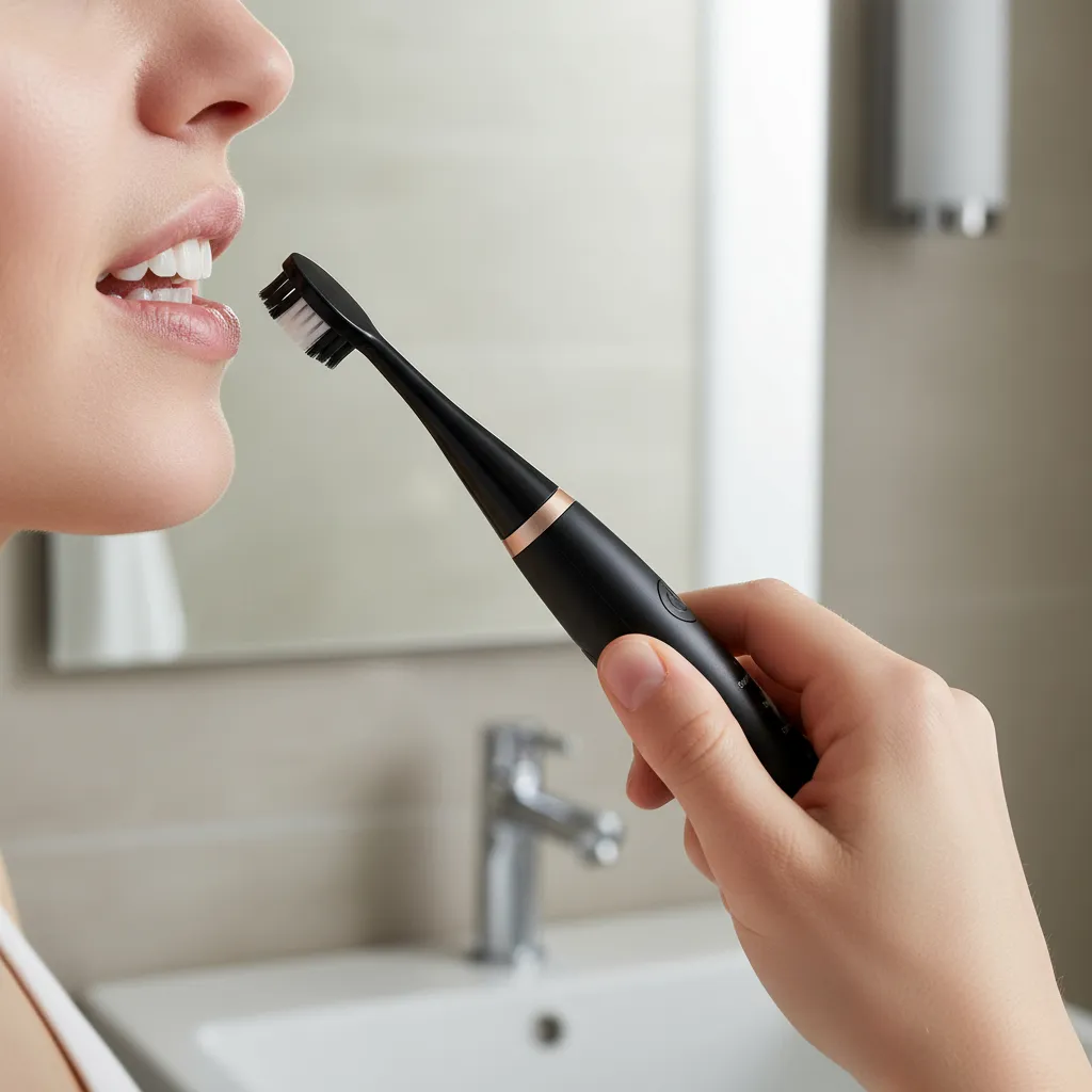 Colocar la punta suavemente sobre la superficie dental y mover lentamente a lo largo de los dientes, evitando ejercer demasiada presión.