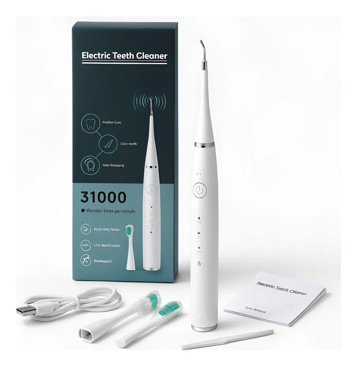 El limpiador Uzzo emplea tecnología ultrasónica para desprender suavemente sarro, placa y manchas causadas por café, tabaco o vino, sin dañar el esmalte dental. Su cuerpo ergonómico y liviano facilita el manejo, mientras que la luz LED integrada mejora la visibilidad durante el uso. Incluye distintas puntas intercambiables según el tipo de limpieza requerida, motor silencioso de bajo consumo y sistema de apagado automático para mayor seguridad. Es apto tanto para uso personal como profesional, ideal para mantener una higiene bucal completa en el hogar.