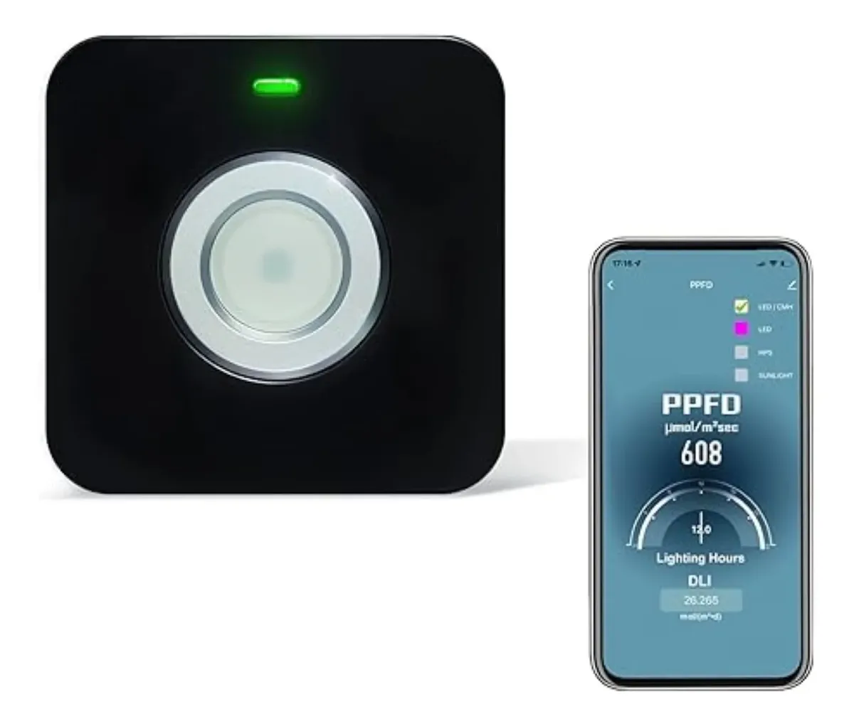 Modo de uso: Encender el equipo mediante el botón de encendido. Colocar el sensor cuántico a la altura del dosel de las plantas o en el punto donde se desea medir la luz. Orientar el sensor hacia la fuente de iluminación manteniéndolo horizontal. Leer el valor de PPFD mostrado en pantalla. Repetir la medición en distintos puntos del área para evaluar uniformidad lumínica. Utilizar la función de cálculo DLI si se requiere conocer la integral diaria de luz. Apagar el equipo después de su uso para preservar la batería.