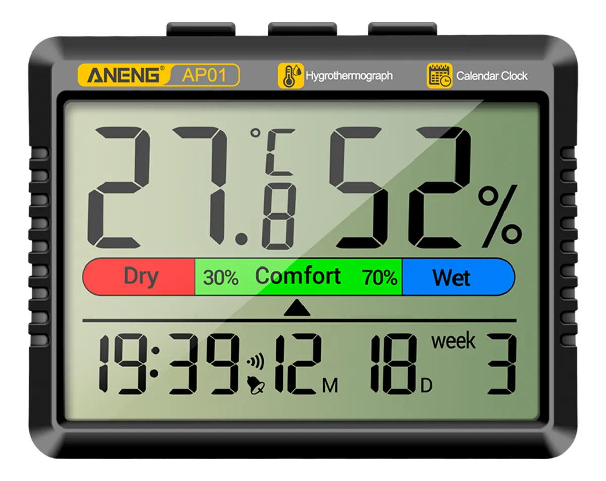 El ANENG AP01 es un medidor de temperatura y humedad de alta precisión, diseñado para brindar información confiable y rápida en cualquier entorno. Ideal para uso doméstico, oficinas, laboratorios o actividades al aire libre, este dispositivo compacto permite medir la temperatura del aire y la humedad relativa con facilidad, asegurando el control óptimo del ambiente.