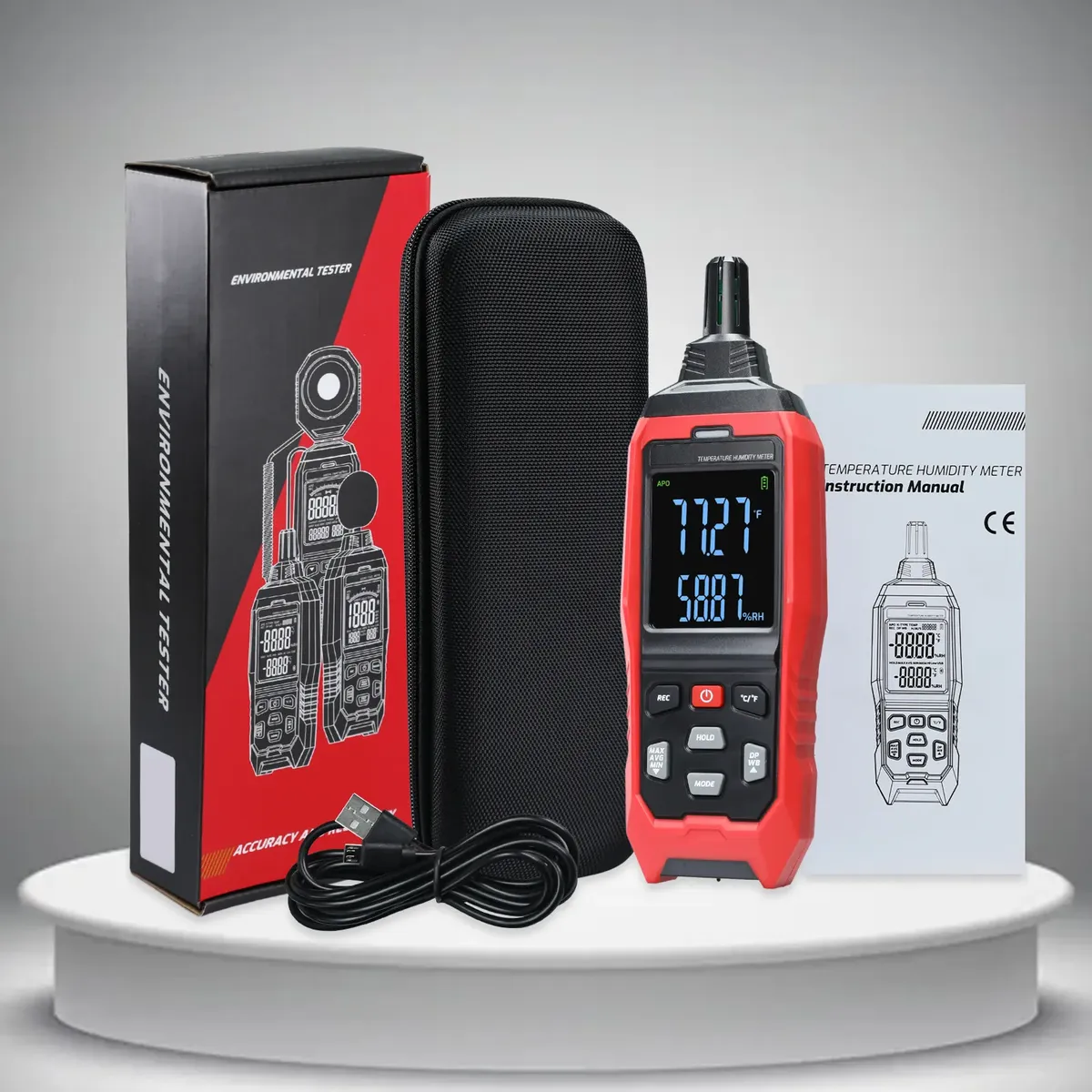 Ficha técnica: Tipo de producto: Medidor digital de temperatura y humedad Rango de medición de temperatura: -40 a 80 °C (-40 a 176 °F) Rango de medición de humedad relativa: 0 a 100 % RH Precisión de temperatura: ±0.5 °C Resolución: 0.01 °C / 0.01 % RH Tipo de sensor: Sensor interno de temperatura y humedad Visualización: Pantalla digital Alimentación: Batería Especificaciones: Medición combinada de temperatura y humedad ambiental en un solo equipo. Pantalla digital que permite visualizar simultáneamente ambos parámetros. Amplio rango de temperatura apto para ambientes fríos y cálidos. Rango completo de humedad relativa para monitoreo en condiciones secas o húmedas. Alta resolución que permite detectar variaciones pequeñas en las condiciones ambientales. Diseño compacto para instalación o colocación en diferentes espacios.