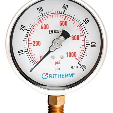 Manometro Analogico Industrial Medidor Presion 1000 Psi 1/4 Ritherm MP-1000-2.5