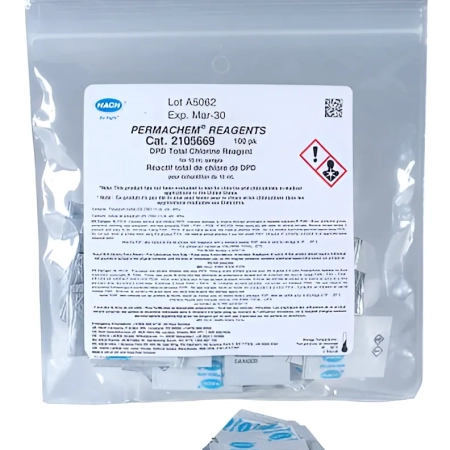 Sobres de reactivo en polvo para cloro total Hach DPD, 10 ml, paquete de 100, Hach 2105669
