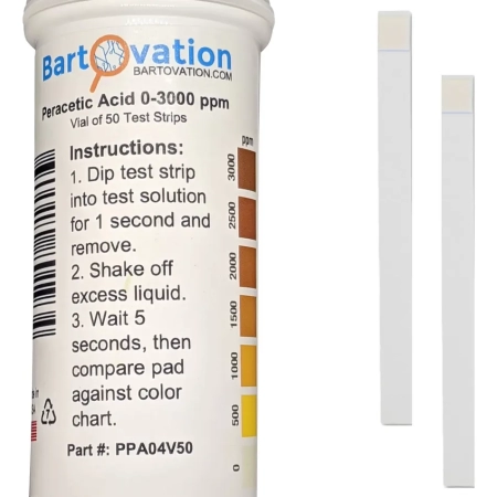 50 Tiras Reactivas De Acido Peracético Extra Alto 0-3000 Ppm Bartovation