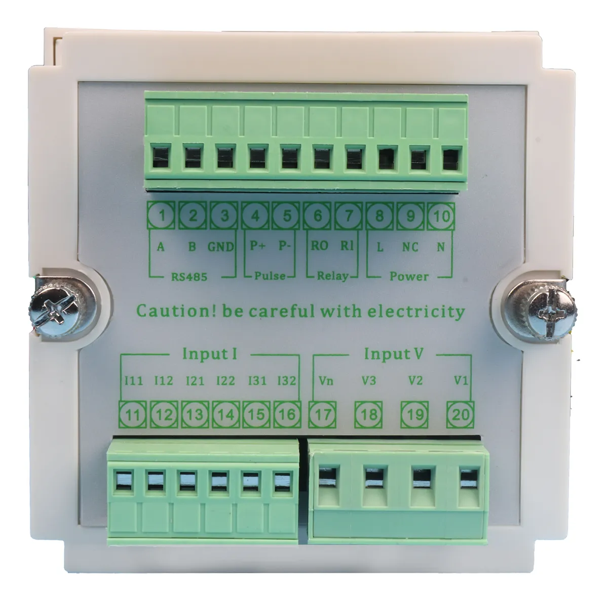 Indicación simultánea de voltaje, corriente, potencia activa y reactiva, factor de potencia, distorsión armónica y energía total.