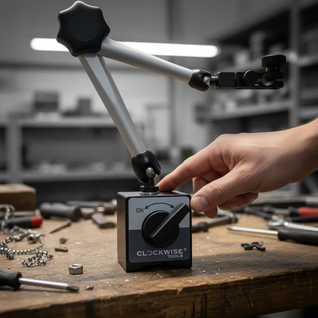 Base magnética con brazo ajustable diseñada para brindar máxima estabilidad y precisión en trabajos de medición, control de calidad y mecanizado. Su construcción robusta y su diseño versátil la hacen ideal para talleres mecánicos, industrias y entornos profesionales.