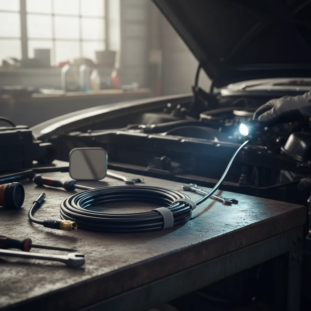 Cable de inspección para boroscopio/endoscopio diseñado para trabajos de diagnóstico visual en espacios reducidos. Cuenta con una sonda flexible de alta resistencia que permite acceder a zonas de difícil alcance, ideal para aplicaciones en mecánica automotriz, mantenimiento industrial, plomería y control de cavidades. Su construcción robusta y conexión segura garantizan un desempeño confiable en tareas profesionales.