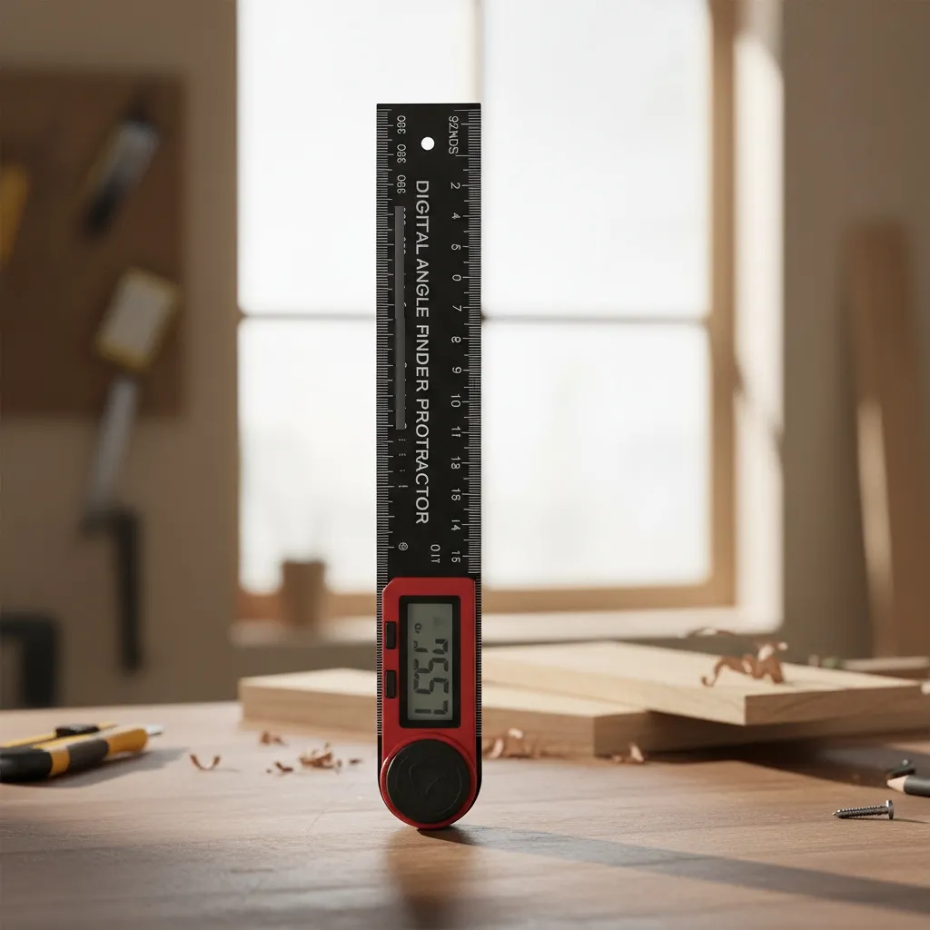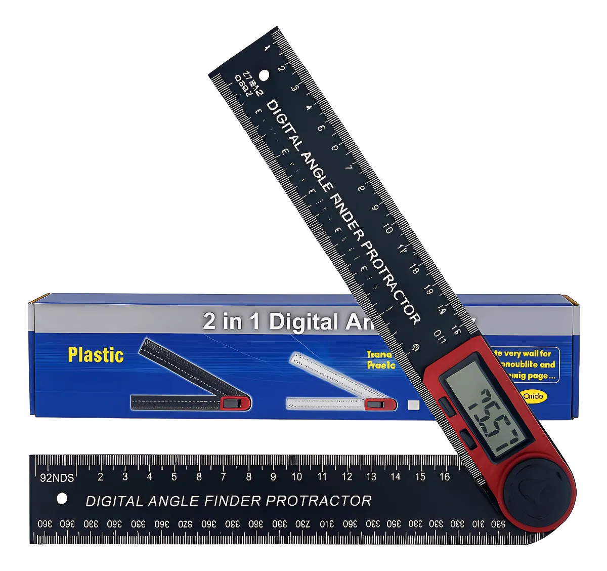 Este goniómetro digital 2 en 1 combina una regla doble de 300 mm con un medidor de ángulos electrónico de alta precisión. Es ideal para carpintería, herrería, instalación de muebles, construcción y todo tipo de trabajos donde se requiera medir o transferir ángulos exactos. Su pantalla LCD facilita la lectura y su diseño liviano y portátil permite usarlo en cualquier entorno de trabajo.