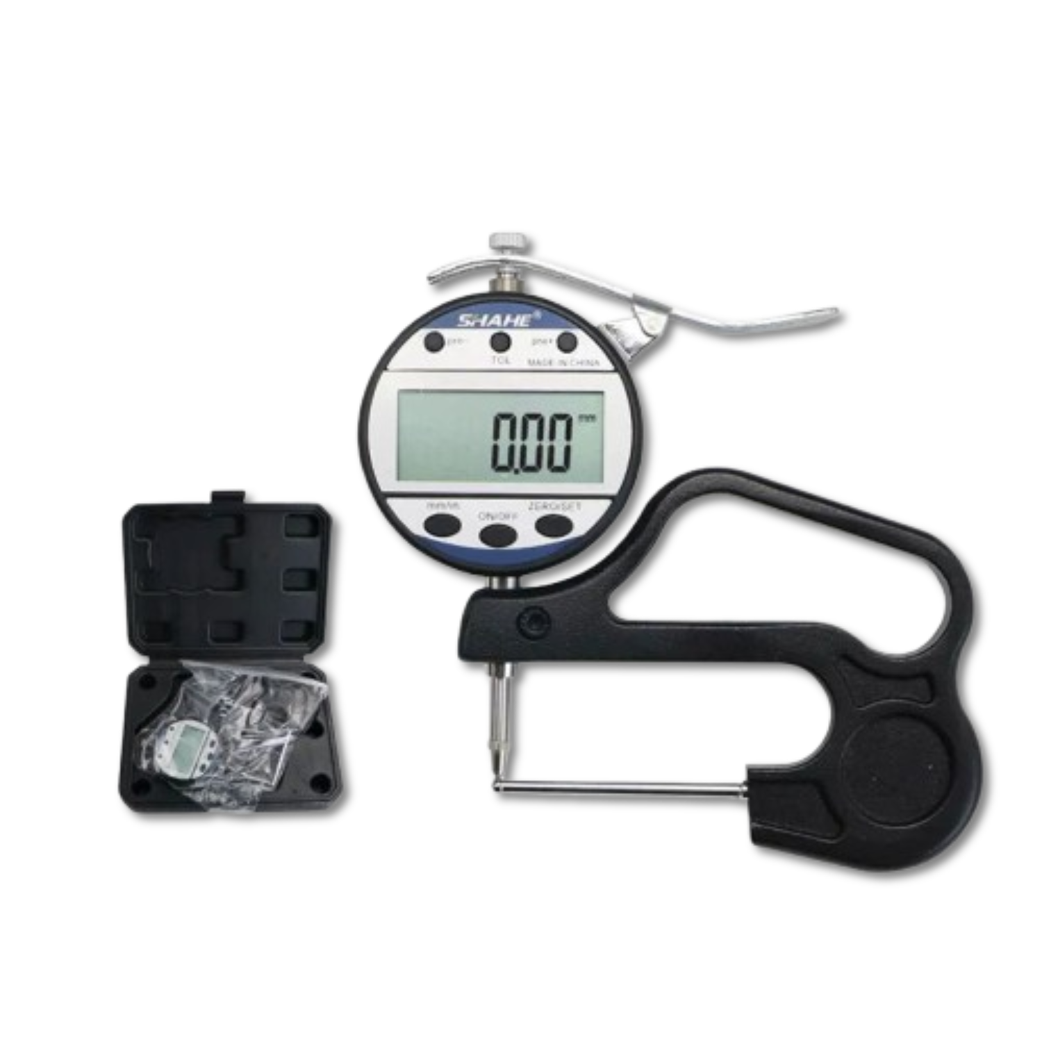 Su construcción permite una medición precisa con una resolución de 0,01 mm y una precisión de hasta ±0,03 mm. Incorpora una pantalla LCD de lectura rápida y funciones prácticas como conversión mm/pulgadas, reinicio en cualquier punto y encendido/apagado.