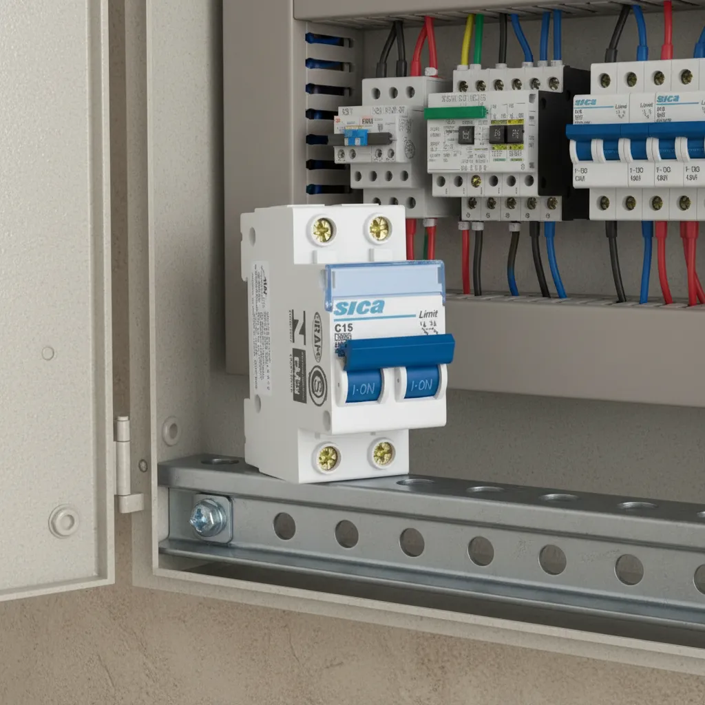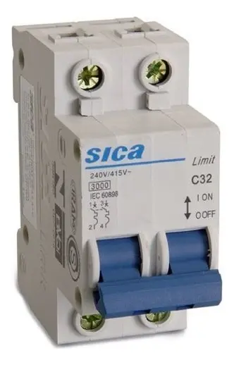 Ficha técnica: Marca: SICA Modelo: 782205 Tipo: Interruptor termomagnético Cantidad de polos: 2 polos (bipolar) Corriente nominal: 5 A Curva de disparo: C Capacidad de corte: 3 kA (3000 A) Tensión nominal: 230/400 V AC Frecuencia: 50/60 Hz Montaje: Riel DIN Normativa: IEC 60898 Material: Plástico autoextinguible Especificaciones: Protección térmica contra sobrecargas Protección magnética contra cortocircuitos Corte simultáneo en ambos polos para mayor seguridad Diseño compacto para tableros eléctricos Instalación rápida sobre riel DIN Indicador visual de estado Alta durabilidad y resistencia Apto para uso residencial y comercial