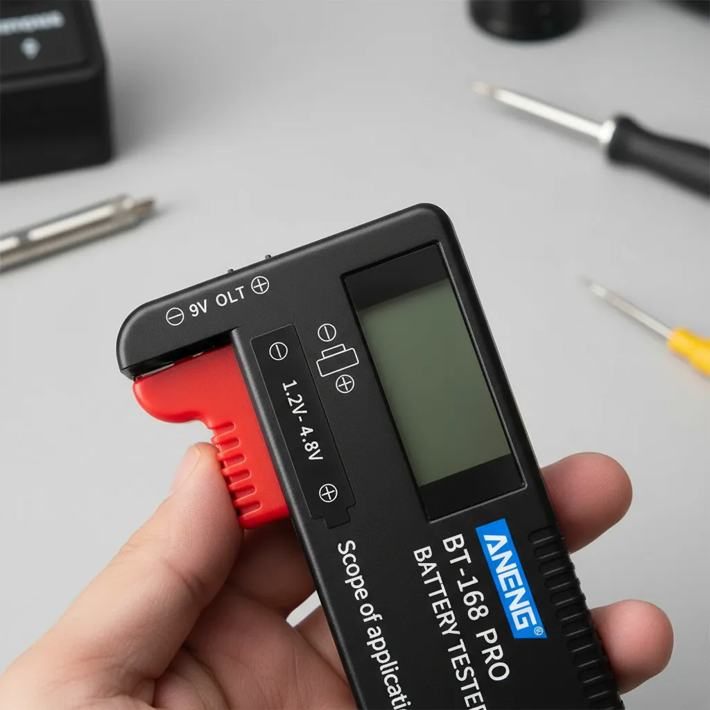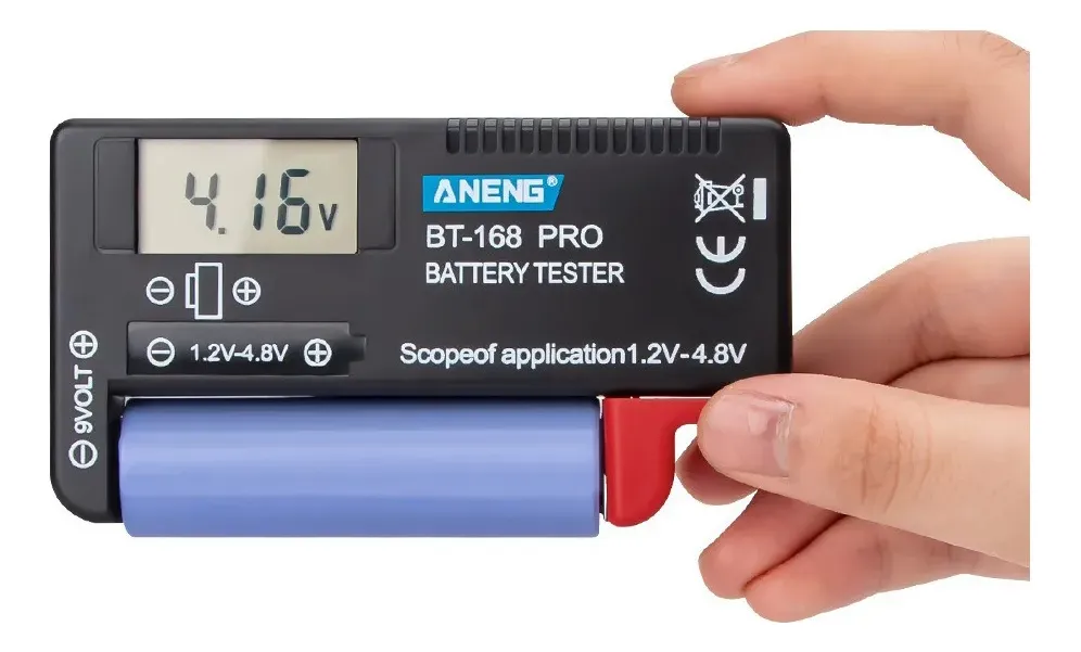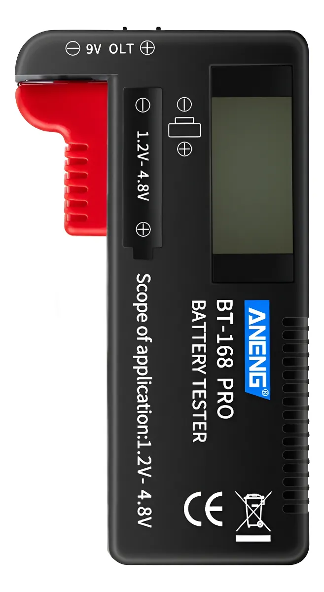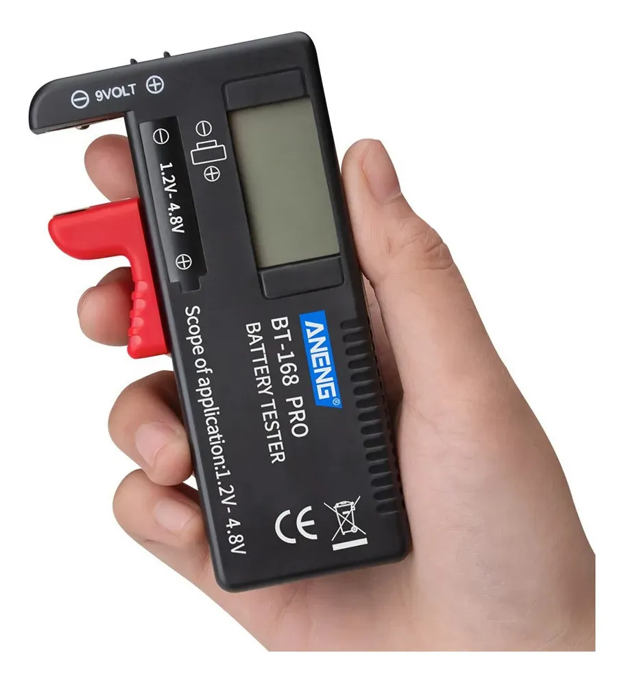 El probador de baterías Aneng BT-168B PRO es una herramienta práctica y confiable para verificar rápidamente el nivel de carga de diferentes tipos de pilas y baterías. Su diseño compacto y su pantalla digital permiten una lectura precisa del estado de cada batería, ayudando a identificar si aún conserva carga útil o si necesita ser reemplazada. Ideal para uso doméstico, técnico o profesional, es compatible con una amplia variedad de formatos, incluyendo AA, AAA, C, D, 9V y pilas de botón.