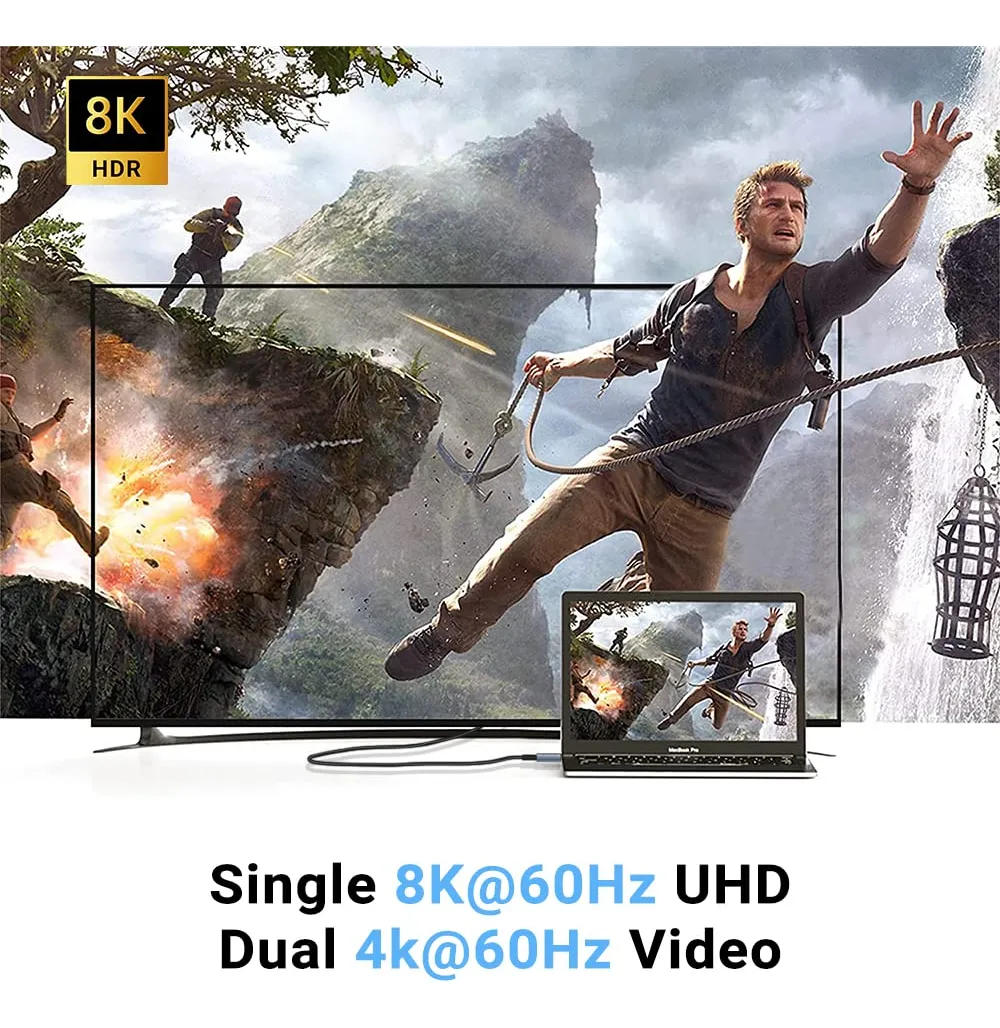 También permite transmitir video en resoluciones ultra altas, ideal para monitores 4K y 8K. Su blindaje múltiple reduce interferencias electromagnéticas, garantizando un funcionamiento seguro y duradero. Es compatible hacia atrás con versiones anteriores de USB-C, adaptándose automáticamente a la mayor velocidad soportada por los dispositivos conectados. Modo de uso Conectar uno de los extremos USB-C al dispositivo principal como notebook, PC, docking station o cargador.
