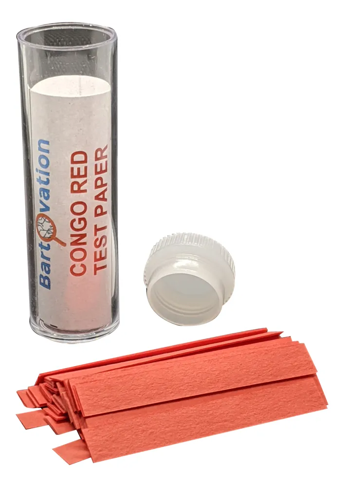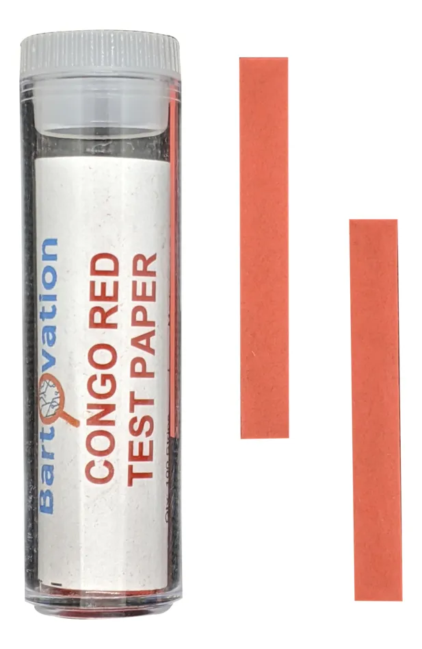 Uso: Laboratorio, industria, educación, control químico Especificaciones Las tiras están impregnadas con el indicador rojo Congo, el cual cambia de color de forma característica según la acidez de la muestra dentro del rango especificado. Permiten una lectura visual rápida y sencilla. El formato en tiras facilita la manipulación y reduce el consumo de muestra. El vial protege las tiras de la humedad y la contaminación, ayudando a conservar la estabilidad del reactivo durante su vida útil. No requiere calibración ni equipos adicionales.
