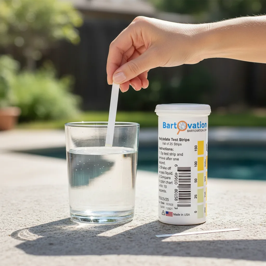 Uso: Manual, sin equipos electrónicos Especificaciones Diseñadas para la detección rápida de molibdato en agua Lectura visual clara mediante escala de colores No requieren calibración ni alimentación eléctrica Uso portátil en campo o laboratorio Vial resistente que protege las tiras de la humedad y la contaminación Aptas para controles periódicos y verificaciones rápidas Producto descartable, una tira por medición Modo de uso Sumergir la tira reactiva en la muestra de agua durante el tiempo recomendado Retirar la tira y eliminar el exceso de líquido sin frotar Esperar el tiempo de reacción indicado Comparar el color obtenido con la escala incluida para determinar la concentración de molibdato