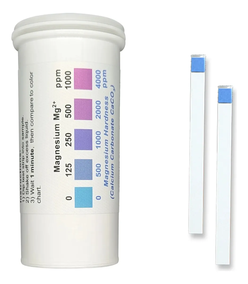 Las tiras reactivas de magnesio 0–1000 ppm permiten medir de manera rápida y sencilla la concentración de magnesio presente en agua y soluciones acuosas. Son ideales para el control de dureza del agua, sistemas de tratamiento, calderas, torres de enfriamiento, acuarios, procesos industriales y aplicaciones de laboratorio. Ofrecen resultados inmediatos mediante comparación visual, sin necesidad de instrumental electrónico ni reactivos adicionales.