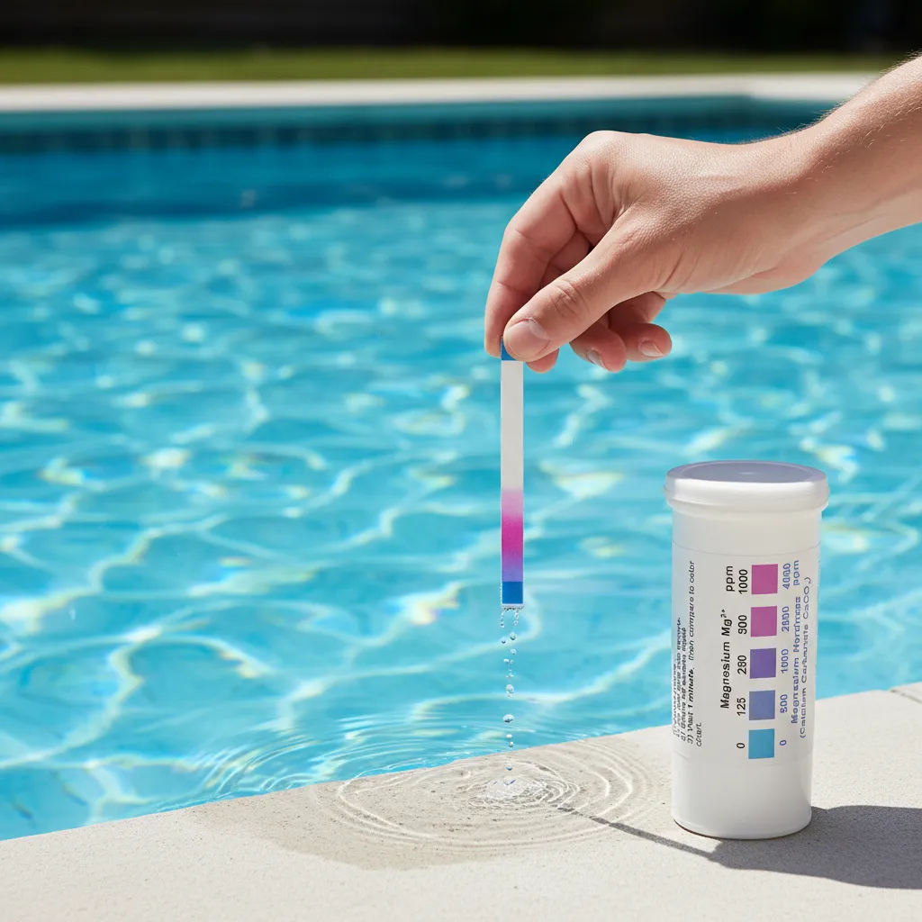 Modo de uso Sumergir la tira reactiva en la muestra de agua durante el tiempo recomendado Retirar la tira y eliminar el exceso de líquido sin frotar Esperar el tiempo de reacción indicado Comparar el color obtenido con la escala incluida para determinar la concentración de magnesio Desechar la tira luego de la medición
