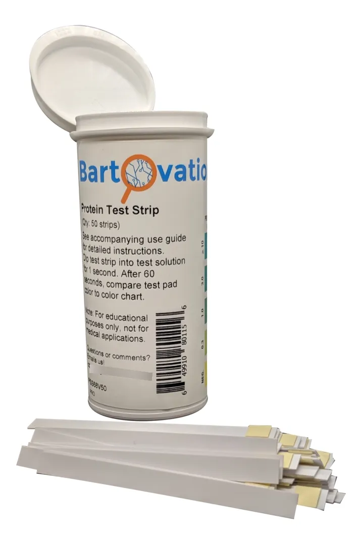 Las tiras reactivas para medir proteína residual en alimentos Bartovation permiten detectar de forma rápida y visual la presencia de residuos proteicos en soluciones acuosas asociadas a alimentos y procesos alimentarios. Son una herramienta práctica para controles de limpieza, verificación de procesos y análisis básicos de laboratorio, sin necesidad de instrumental electrónico. El frasco contiene 50 tiras listas para usar, con lectura sencilla mediante comparación colorimétrica.