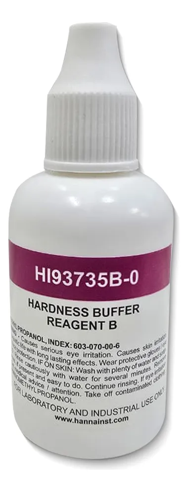 El reactivo buffer Hanna HI93735B-0 está diseñado para la determinación de dureza total en rango bajo cuando se utiliza junto con los fotómetros y colorímetros portátiles Hanna Instruments compatibles.