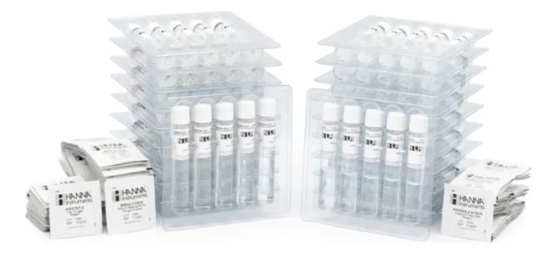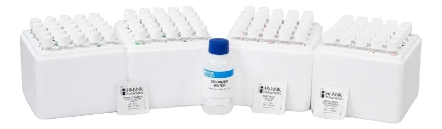Los HI93767A-50 son reactivos para determinar de manera colorimétrica el contenido de nitrógeno total en un rango bajo. El set de viales contiene suficiente reactivo para 50 test que pueden ser usados con un fotómetro compatible.