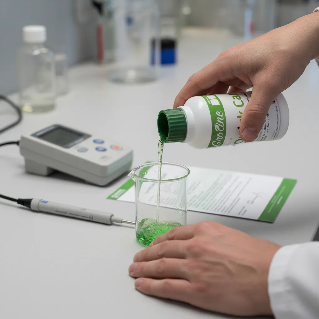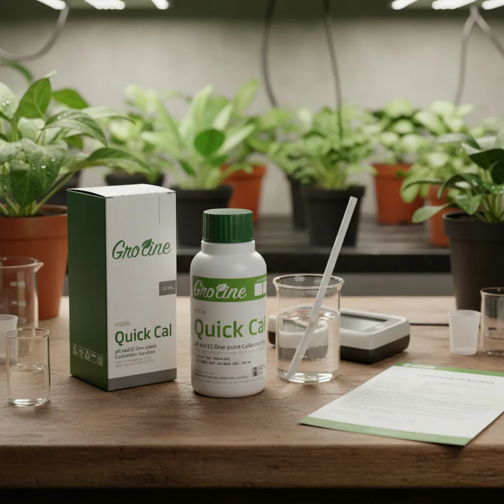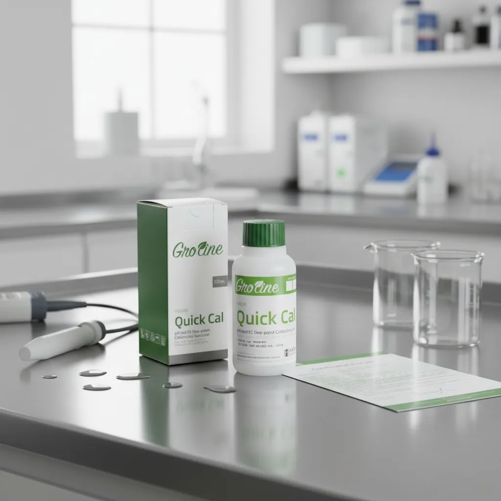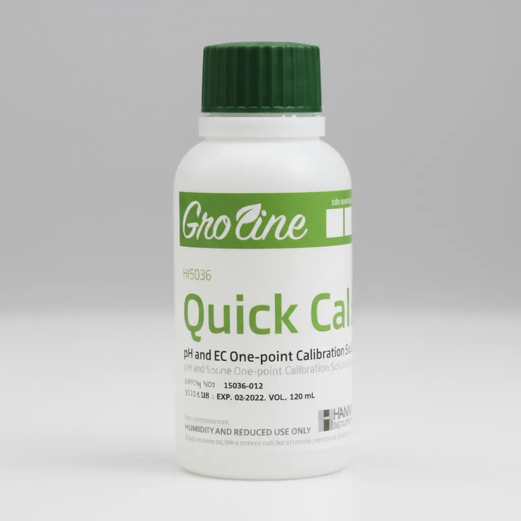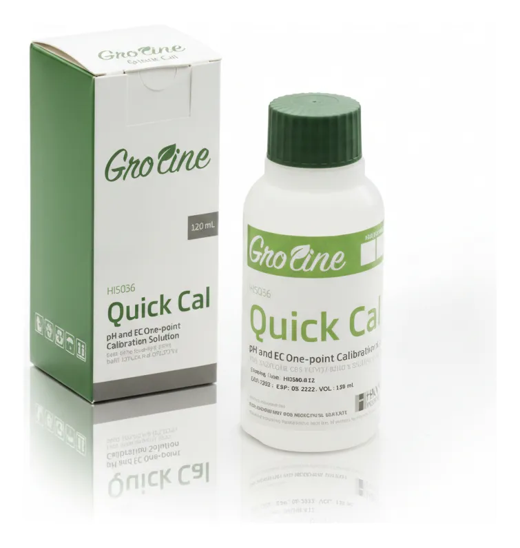 Diseñada específicamente para equipos de la línea GroLine. Modo de uso Verificar que el medidor sea compatible con la función Quick Cal. Encender el instrumento y seleccionar el modo de calibración rápida. Verter una pequeña cantidad de la solución en un recipiente limpio o utilizar directamente desde la botella sin contaminar el contenido. Sumergir el electrodo de pH y/o el sensor de conductividad en la solución. Esperar a que el medidor estabilice la lectura y confirmar la calibración según las indicaciones del equipo. Enjuagar los sensores con agua destilada después de completar el proceso. Cerrar bien la botella para mantener la frescura y evitar evaporación o contaminación.