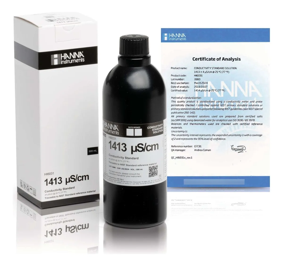 Solución de Calibración de Conductividad 1413 µS/cm – Hanna HI6031