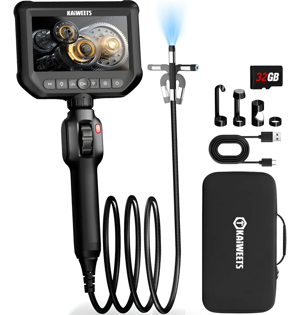 El boroscopio articulado bidireccional KAIWEETS con cable de 1,5 metros es una herramienta profesional de inspección diseñada para acceder y visualizar áreas de difícil alcance.