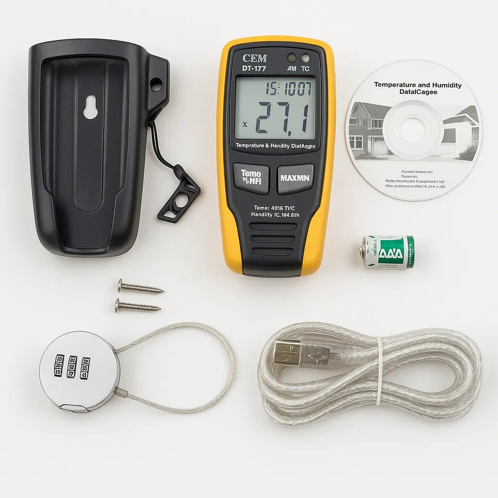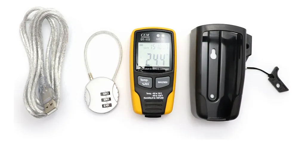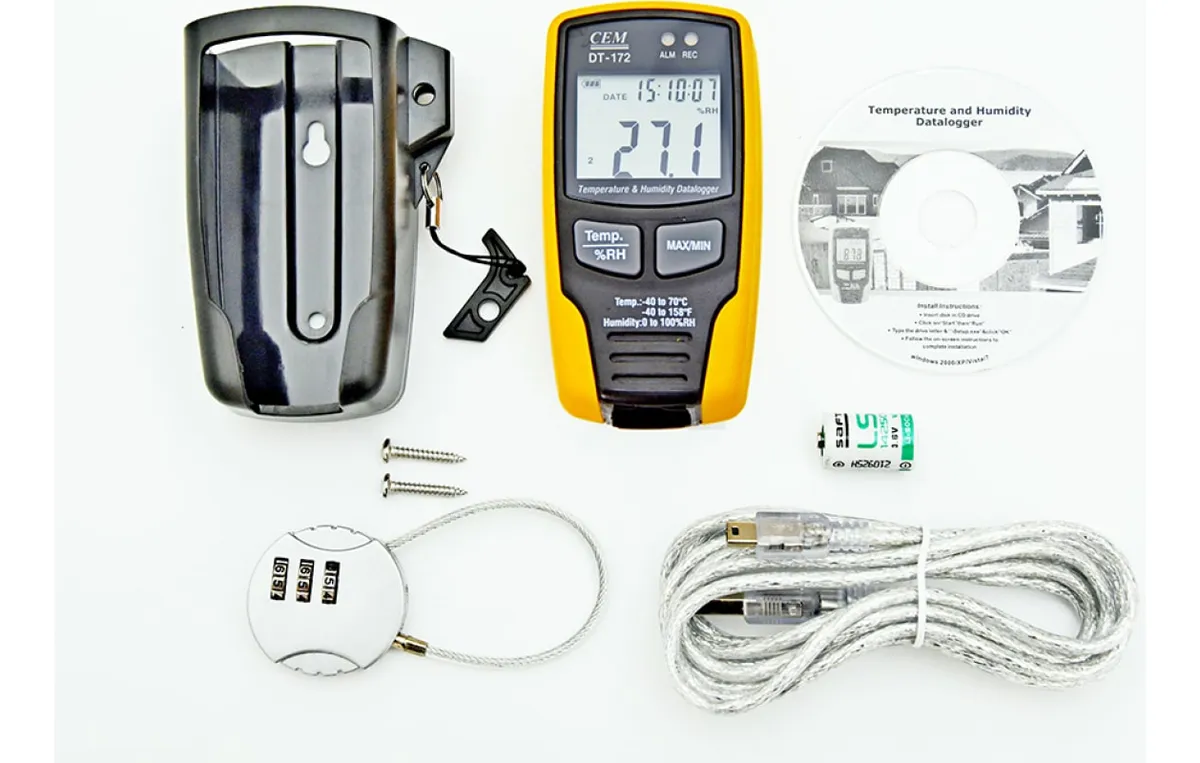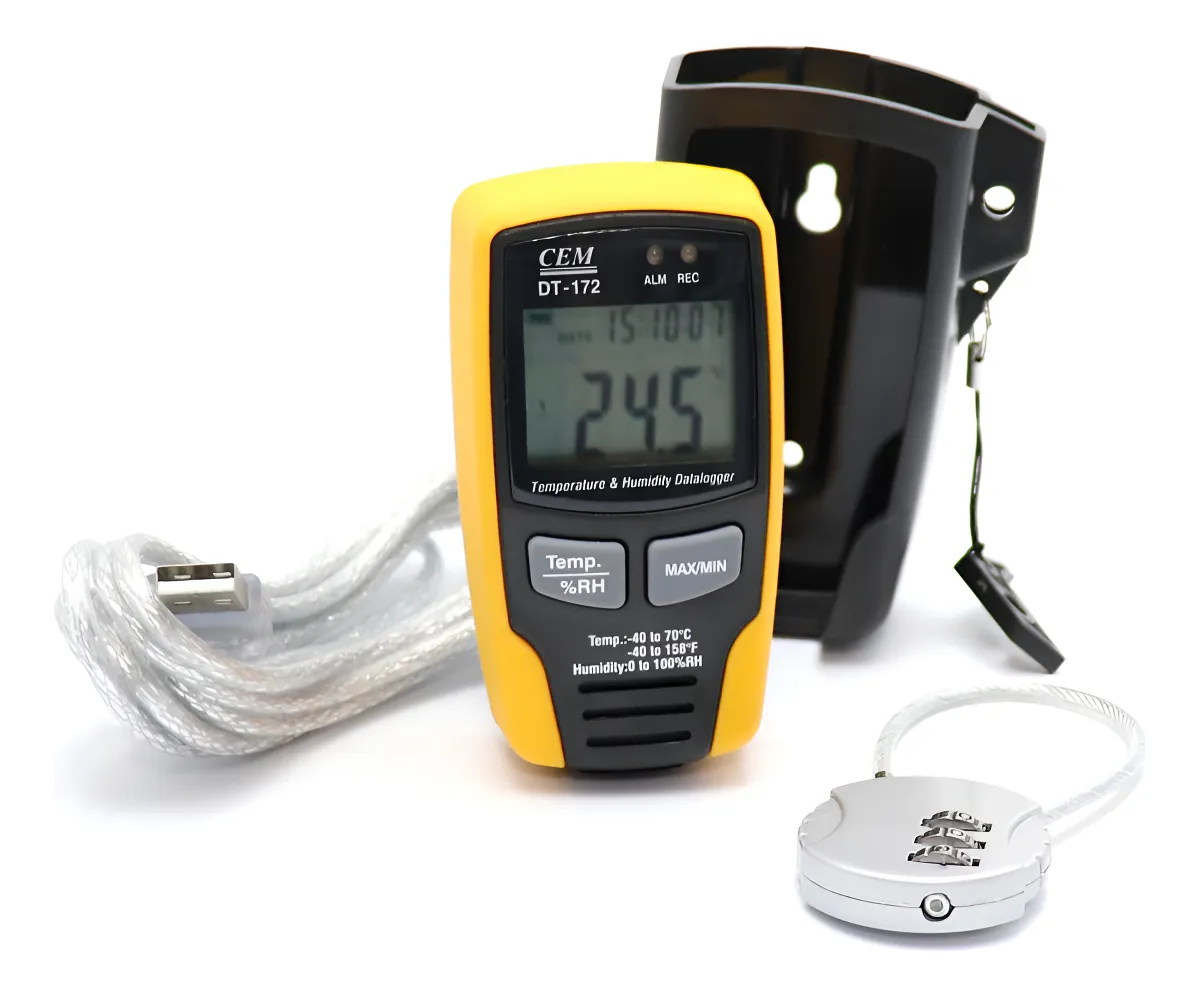 El CEM DT-172 es un registrador de datos de temperatura y humedad (datalogger) confiable y preciso, diseñado para medir, registrar y analizar condiciones ambientales en diferentes entornos. Es ideal para el control de almacenes, laboratorios, cámaras frigoríficas, transporte de alimentos, invernaderos y otras aplicaciones que requieren monitoreo continuo de temperatura y humedad. Su diseño compacto, pantalla LCD y conectividad USB facilitan el uso y la descarga de datos al ordenador.