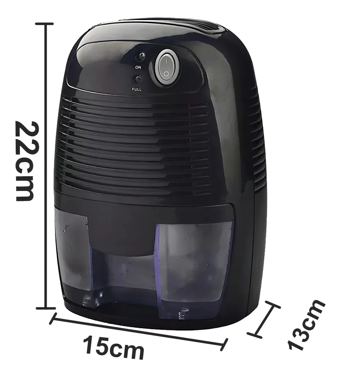 Ficha técnica Modelo: DH500B-3 Tipo de equipo: Deshumidificador doméstico Capacidad de extracción: 250 ml a 300 ml por día Capacidad de depósito interno: 500 ml Voltaje de alimentación: especificar según versión (por lo general 220-240 V CA) Frecuencia: 50/60 Hz Consumo de energía: depende del modelo Uso recomendado: espacios pequeños y cerrados Sistema de operación: automático, con sensor de nivel de agua interno Dimensiones aproximadas: compacto para uso residencial Peso aproximado: ligero, fácil de trasladar Aplicaciones: reducción de humedad en ambientes domésticos y pequeños espacios cerrados Especificaciones Capacidad de deshumidificación continua de 250 ml a 300 ml por día Depósito interno de agua con capacidad de 500 ml Interruptor de apagado automático cuando el tanque está lleno Funcionamiento silencioso para uso en dormitorios u oficinas Diseño compacto y fácil de ubicar Indicadores de llenado del depósito para control de operación No requiere instalación compleja Apto para ambientes cerrados con problemas de humedad