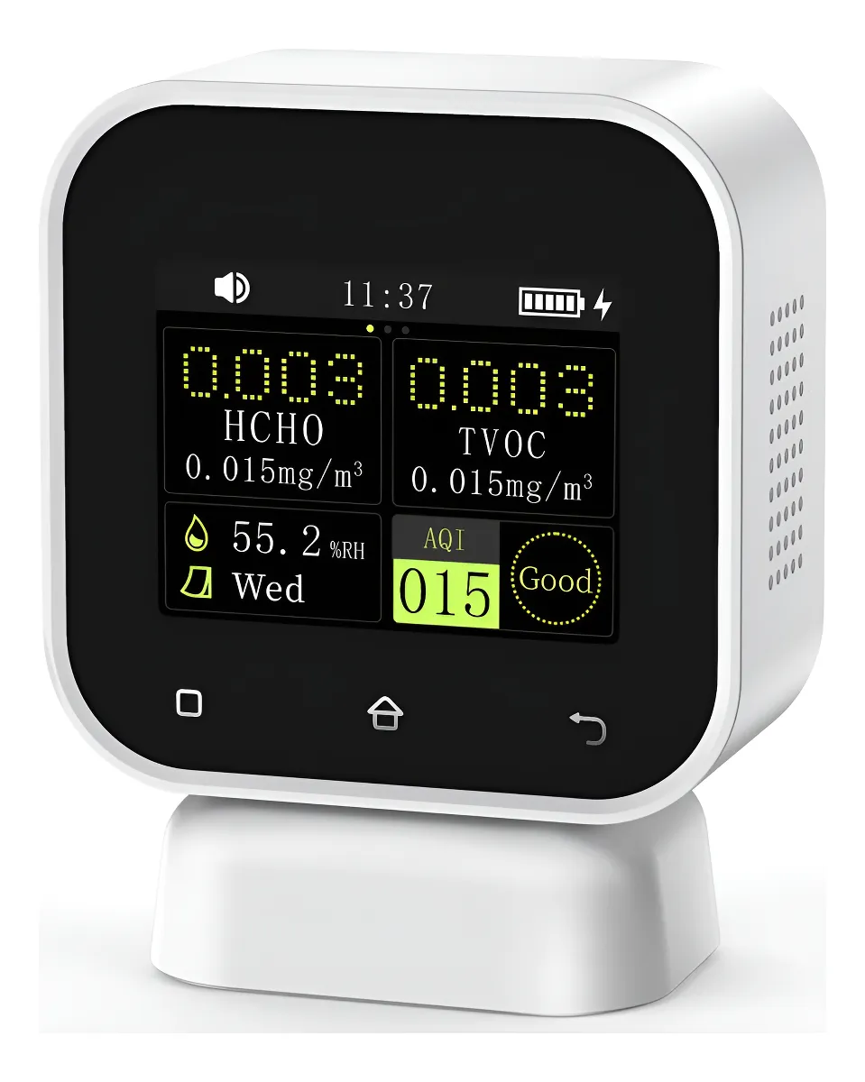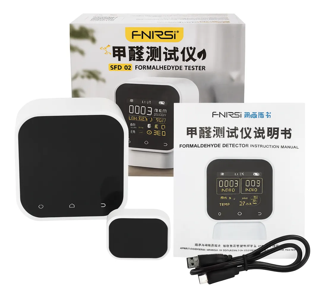 El FNIRSI SFD-02 es un monitor inteligente de calidad del aire diseñado para medir de forma precisa formaldehído (HCHO), compuestos orgánicos volátiles totales (TVOC), temperatura y humedad en espacios interiores. Su sensor electroquímico de alta sensibilidad, pantalla táctil a color y sistema de alertas lo convierten en una herramienta ideal para hogares, oficinas, talleres, comercios y cualquier ambiente donde se requiera evaluar la pureza del aire y prevenir riesgos para la salud.